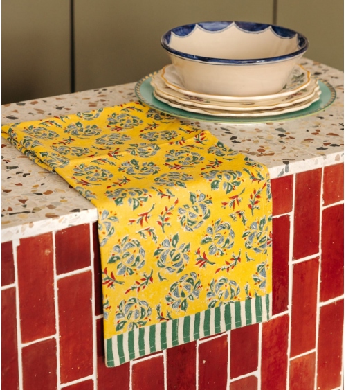 Jamini is a Franco Indian lifestyle brand that creates beautiful and thoughtfully made table linen from 100% natural materials. Jamini is a Paris based, internationally distributed brand, that designs, and markets handcrafted table linen pieces. Rooted in the tradition of "Block print" woodblock printed fabrics and handwoven textiles, an artisanal know-how from the Assam region in India, our rectangular tablecloths and round tablecloths, table mats and napkins are handmade in India, a true sign of our commitment to Indian craftsmanship and the preservation of this rich textile heritage.