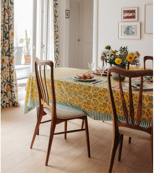 Set your table and surprise your guests indoors and outdoors with our range of cotton tablecloths. Our Indian tablecloths come in contemporary prints with graphic and floral designs that offer a fresh and cheerful touch to your dining room. They are designed to last and add a special touch to your dining room decor.