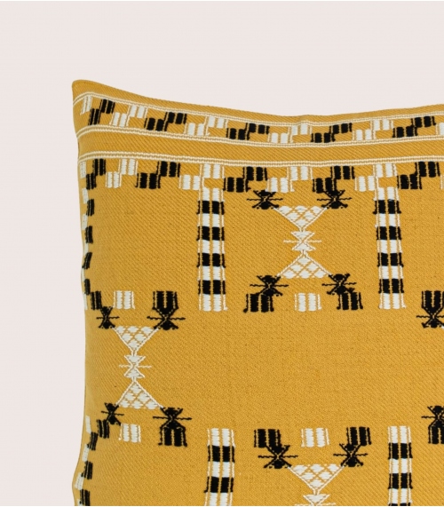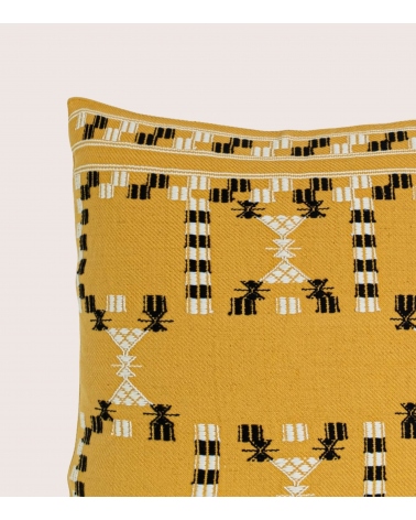 The KUTCHA cushion cover reveals a bohemian ethnic motif, bringing a shimmering, eclectic ambience to your home decor. Living room, bedroom, it brightens up any space.