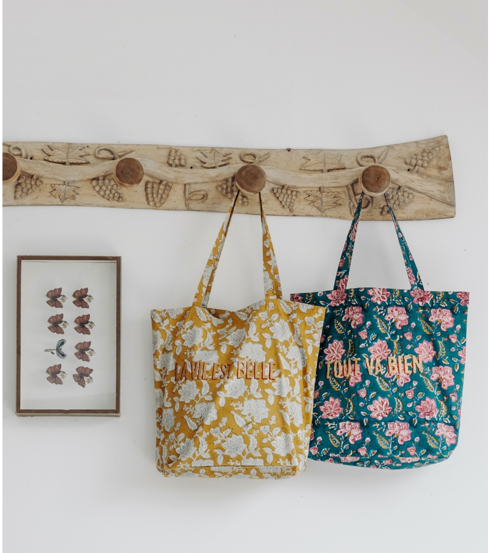 The RANG cotton tote bag is the perfect accessory for your market errands, shopping sprees or seaside getaways. Inspired by Indian street art, it will brighten up your outfit with the combination of its cheerful message and bohemian floral motif.