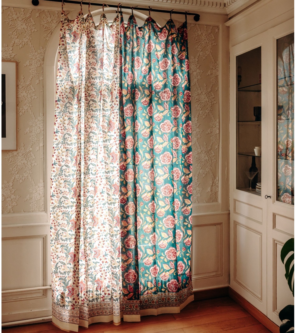 The LONI cotton voile curtain features warm shades of color and a luminous floral motif, bringing elegance and poetry to your home decor. Associate patterns & colors for an enchanting decor and a poetic interior.