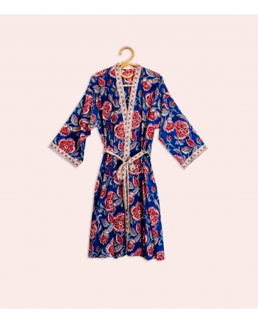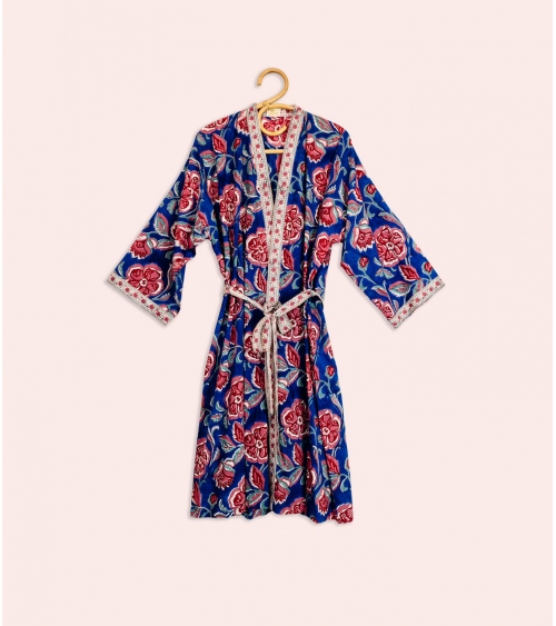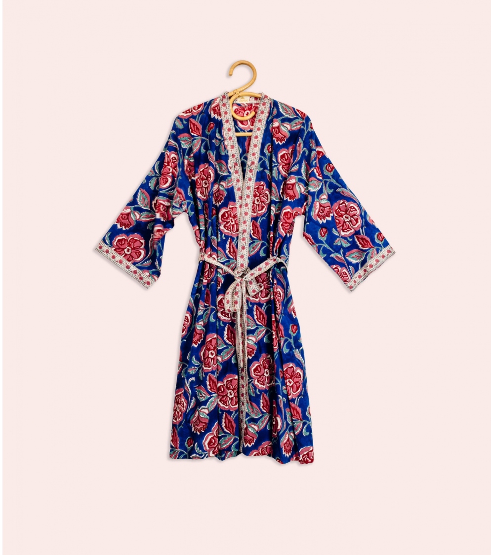 Made in India, this kimono is the result of ancestral craftsmanship. Handcrafted using the traditional block printing technique native to Rajasthan, each piece is carefully created by passionate artisans. This artisanal process helps preserve the country’s unique traditions and supports local communities.