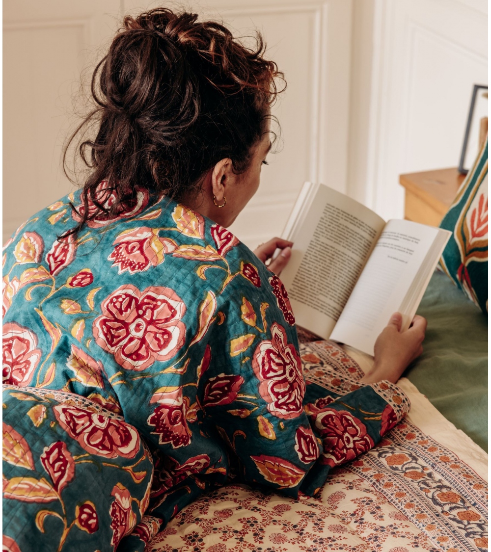 Made in India by expert craftsmen using the traditional blockprint technique, an ancestral Rajasthani skill, this handmade piece helps preserve traditional know-how and support artisan communities.