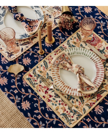 The ANIMA cotton napkin is a bright and cheerful piece to decorate your table with its floral pattern. Perfect for creating a colorful, bohemian atmosphere at the table, this napkin can be matched with our placemats for an elegant visual harmony.