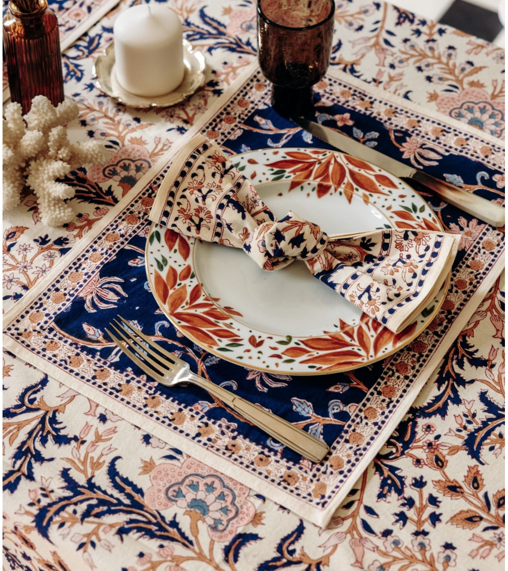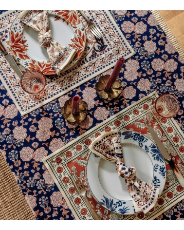 The ARCHANA cotton napkin is a bright and cheerful piece to decorate your table with its floral motif. Perfect for creating a colorful, bohemian atmosphere at the table, this napkin can be matched with our placemats for an elegant visual harmony.
