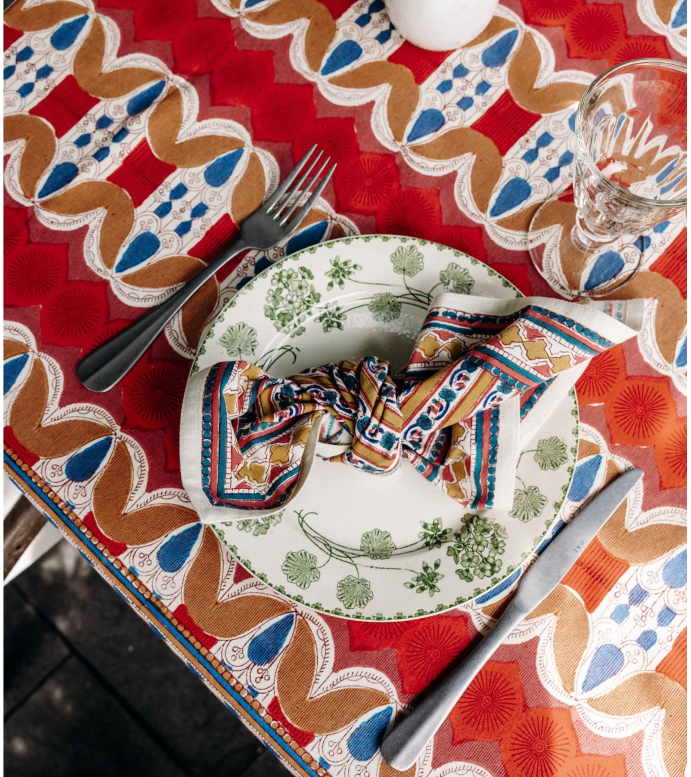The LIZZIE cotton napkin is a colorful and luminous piece to decorate your table with its floral motif. Perfect for creating a bohemian, warm atmosphere at the table, this napkin can be matched with our placemats for a poetic visual harmony.