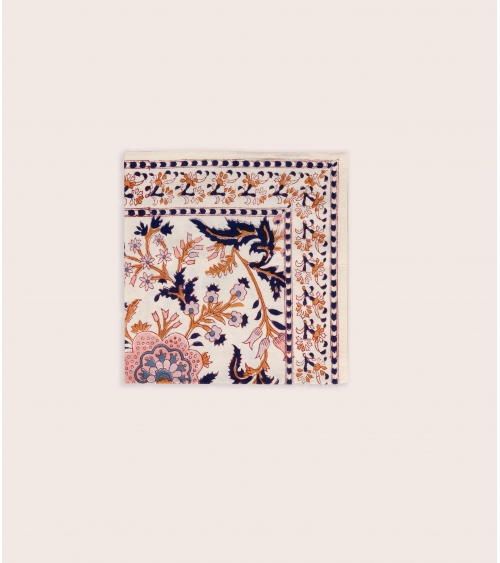 The LIZZIE cotton napkin is a colorful and luminous piece to decorate your table with its floral motif. Perfect for creating a bohemian, warm atmosphere at the table, this napkin can be matched with our placemats for a poetic visual harmony.