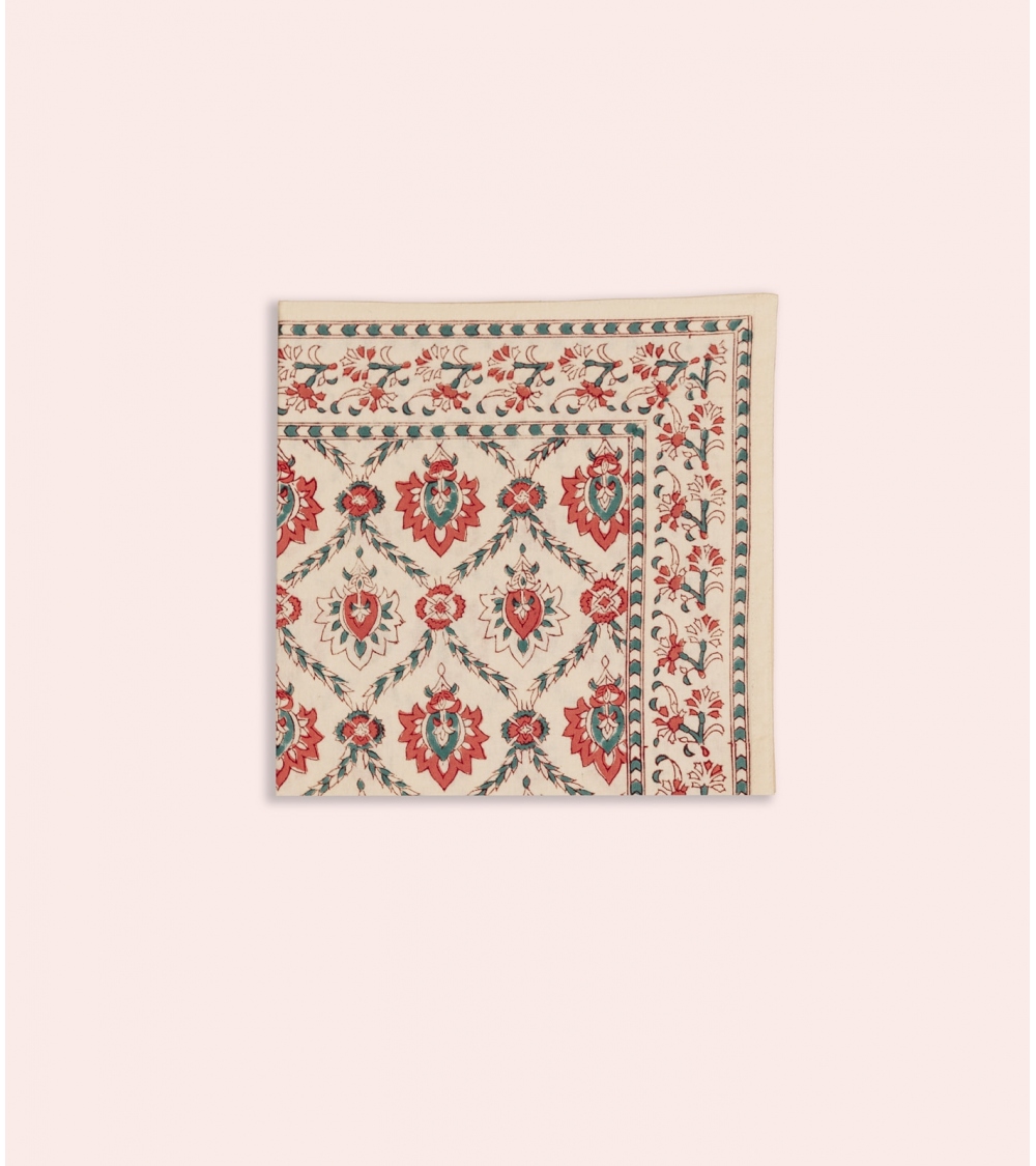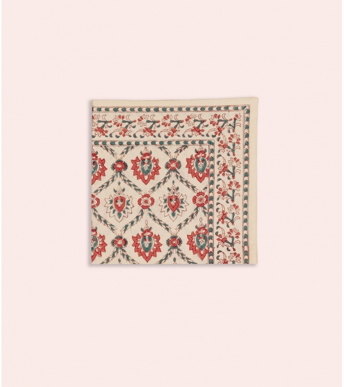 Handcrafted in India using the traditional block printing technique, an ancestral art from Rajasthan, this cotton napkin is meticulously made by passionate artisans. A unique creation that helps preserve an age-old craft while supporting local communities.