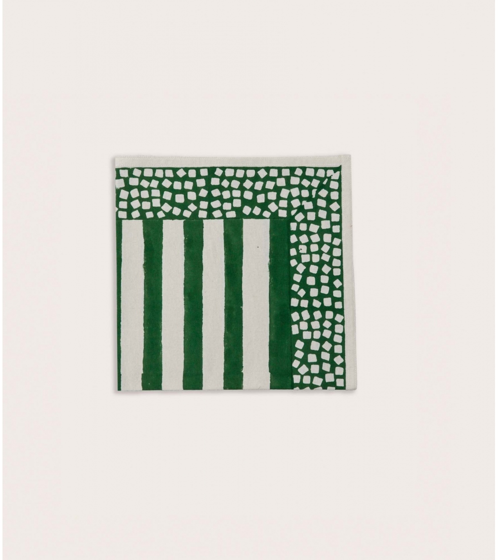 The Lathi napkin pairs naturally with other pieces from the tablecloths collection: placemats and table runners in complementary patterns for a chic, graphic table setting. Mix the stripes of the Lathi with a floral pattern from the collection for an effortlessly eclectic look. The Pale Blue colourway pairs beautifully with ecru, the Green with terracotta or yellow, and the Red with burgundy or ochre.