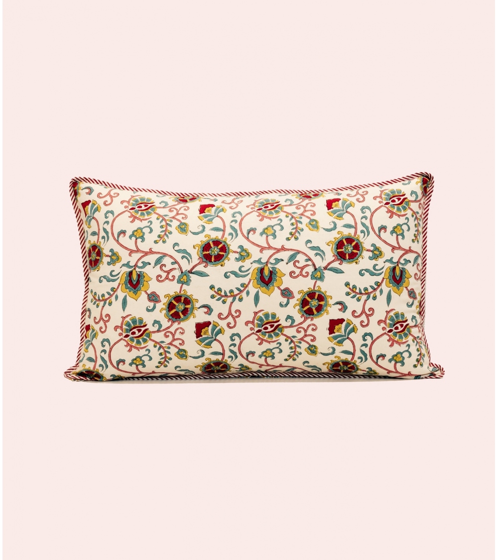 The LIPI cushion cover stands out with its luminous color palette and delicately hand-printed floral motifs, offering a poetic and warm elegance to your home decor. Whether in your living room or bedroom, it enhances every space with a bohemian and refined touch. Mix and match patterns and colors to create a captivating atmosphere and a truly unique interior.