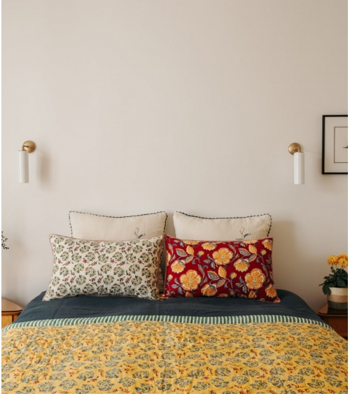 The LONI cushion cover stands out with its luminous color palette and delicately hand-printed floral motifs, offering a poetic and warm elegance to your home decor. Whether in your living room or bedroom, it enhances every space with a bohemian and refined touch. Mix and match patterns and colors to create a captivating atmosphere and a truly unique interior.