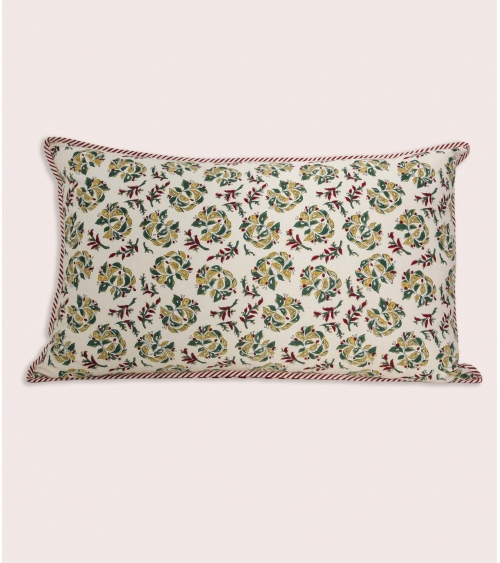 Machine washable at 30°C. Air drying flat is recommended to preserve its shape and the quality of its block print over time.