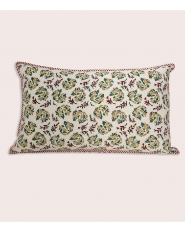 The Sarso cushion cover is made from 100% cotton, block-printed by hand in Rajasthan. Each motif is hand-stamped by skilled Indian artisans using hand-carved wooden blocks, a centuries-old craft that gives every piece its own character.