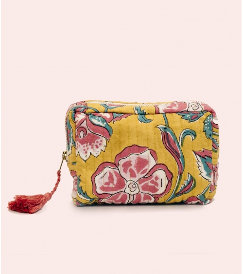 Made in India, this pouch is the result of ancestral craftsmanship. Handcrafted using the traditional block printing technique native to Rajasthan, each piece is carefully created by passionate artisans. This artisanal process helps preserve the country’s unique traditions and supports local communities.