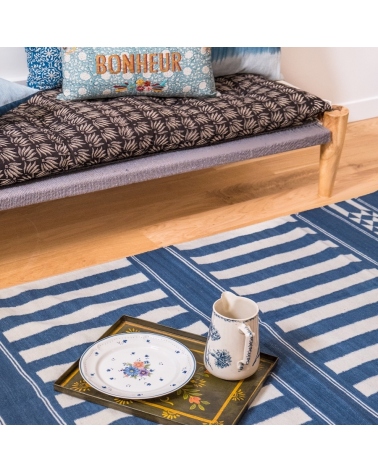 The KUTCH wool rug features soft shades and a graphic pattern for a cosy, poetic ambience to your interior design. Living room, bedroom, it brightens up any space. Combine colors and materials for an enchanting decor and an elegant interior.