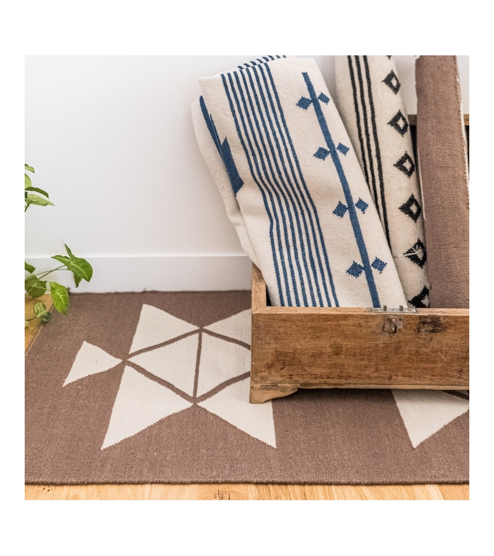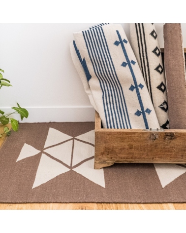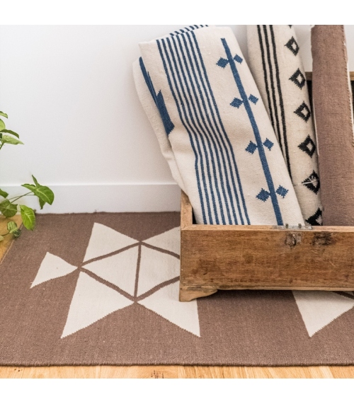 The KUTCH wool rug features soft shades and a graphic pattern for a cosy, poetic ambience to your interior design. Living room, bedroom, it brightens up any space. Combine colors and materials for an enchanting decor and an elegant interior.