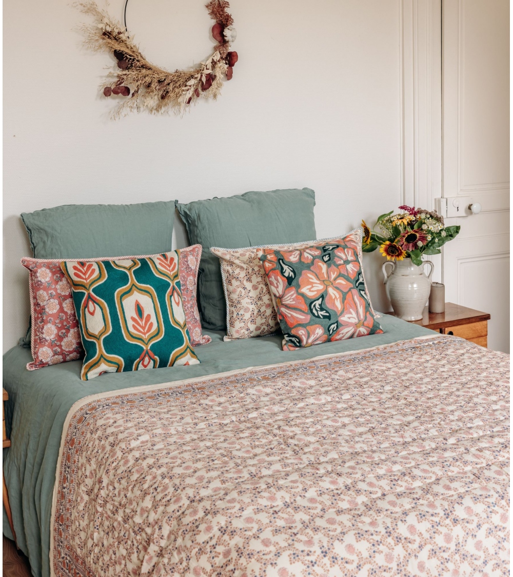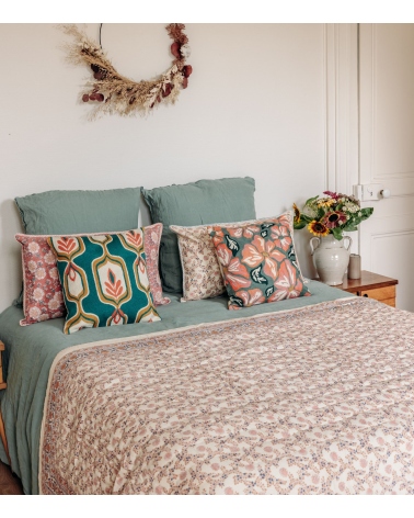 The ANIMA bedspread unfurls its floral motifs in tender shades of color, for a touch of poetry and softness in your home.