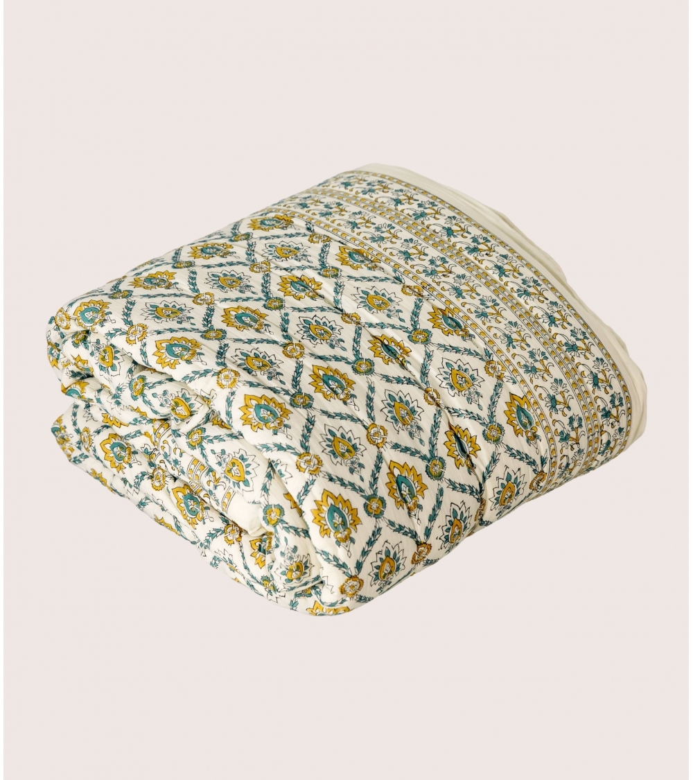 Crafted in India, this bed cover embodies the excellence of ancestral craftsmanship. Created using the traditional block printing technique native to Rajasthan, each piece is carefully handcrafted by passionate artisans. A tribute to unique artisanal traditions and a way to support local communities.