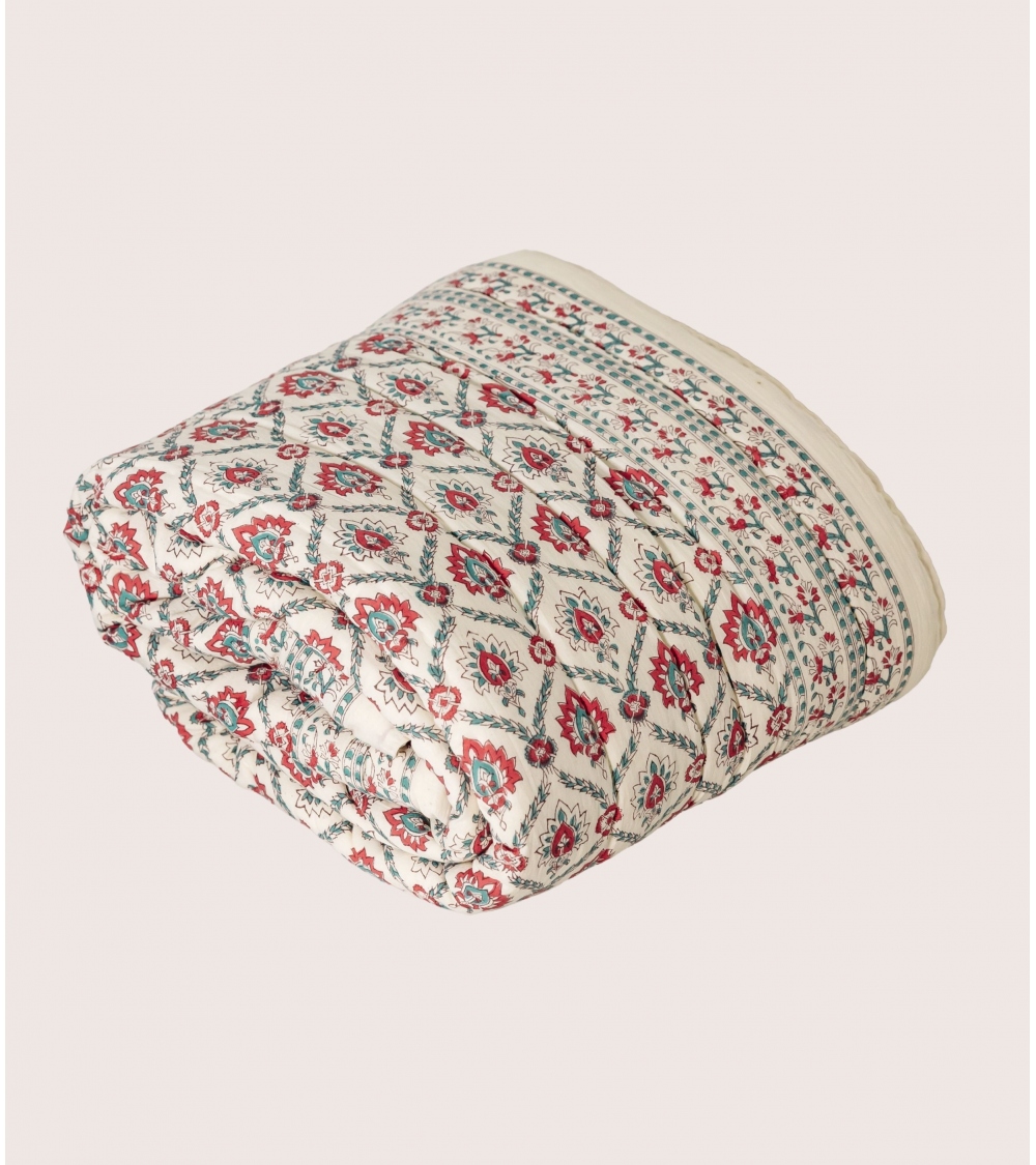 Crafted in India, this bed cover embodies the excellence of ancestral craftsmanship. Created using the traditional block printing technique native to Rajasthan, each piece is carefully handcrafted by passionate artisans. A tribute to unique artisanal traditions and a way to support local communities.