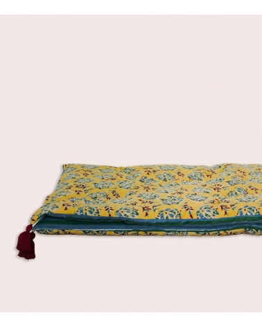 The Sarso bed runner has a non-removable cover. Machine washable at 30°C, air drying is recommended to preserve its colours and the quality of its block print over time.