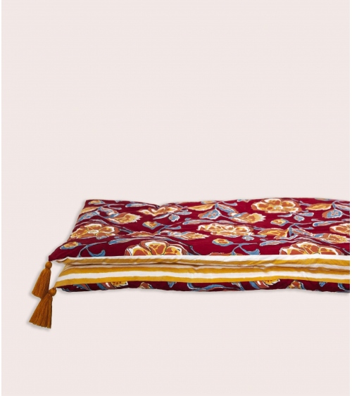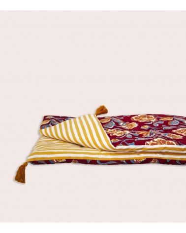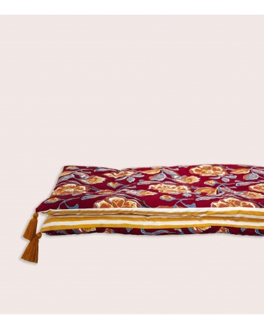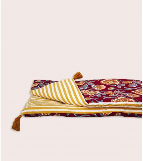 The Loni bed runner has a non-removable cover. Machine washable at 30°C, air drying is recommended to preserve its colours and the quality of its block print over time.