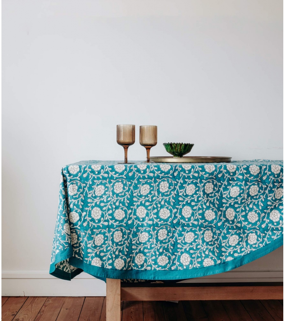 The BANNA cotton tablecloth is a bright and cheerful piece to embellish your table with its Indian floral pattern. Ideal for creating a chic, bohemian atmosphere in your home, this tablecloth can be matched with our placemats and napkins for perfect harmony.