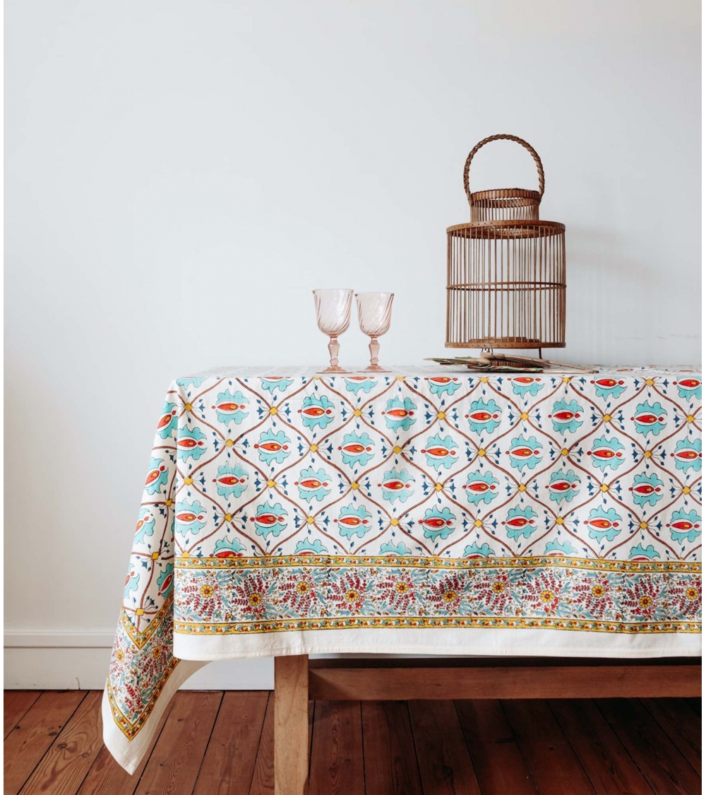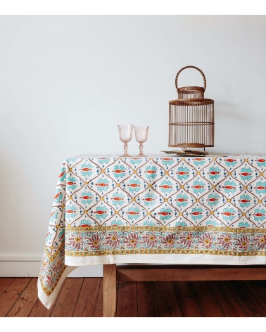 The ARYA cotton tablecloth is a bright and cheerful piece to embellish your table with its colorful graphic pattern. Ideal for creating a contemporary, colorful atmosphere in your home, this tablecloth can be matched with our placemats and napkins for perfect harmony.