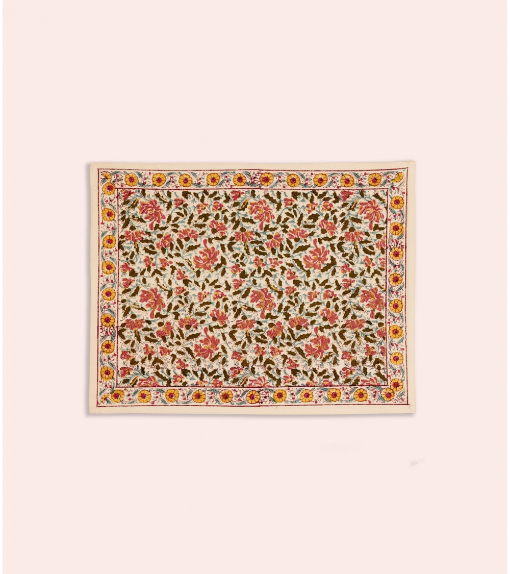 Made in India by expert craftsmen using the traditional blockprint technique, an ancestral skill from Rajasthan, this handmade piece contributes to preserving traditional know-how and supporting artisan communities.