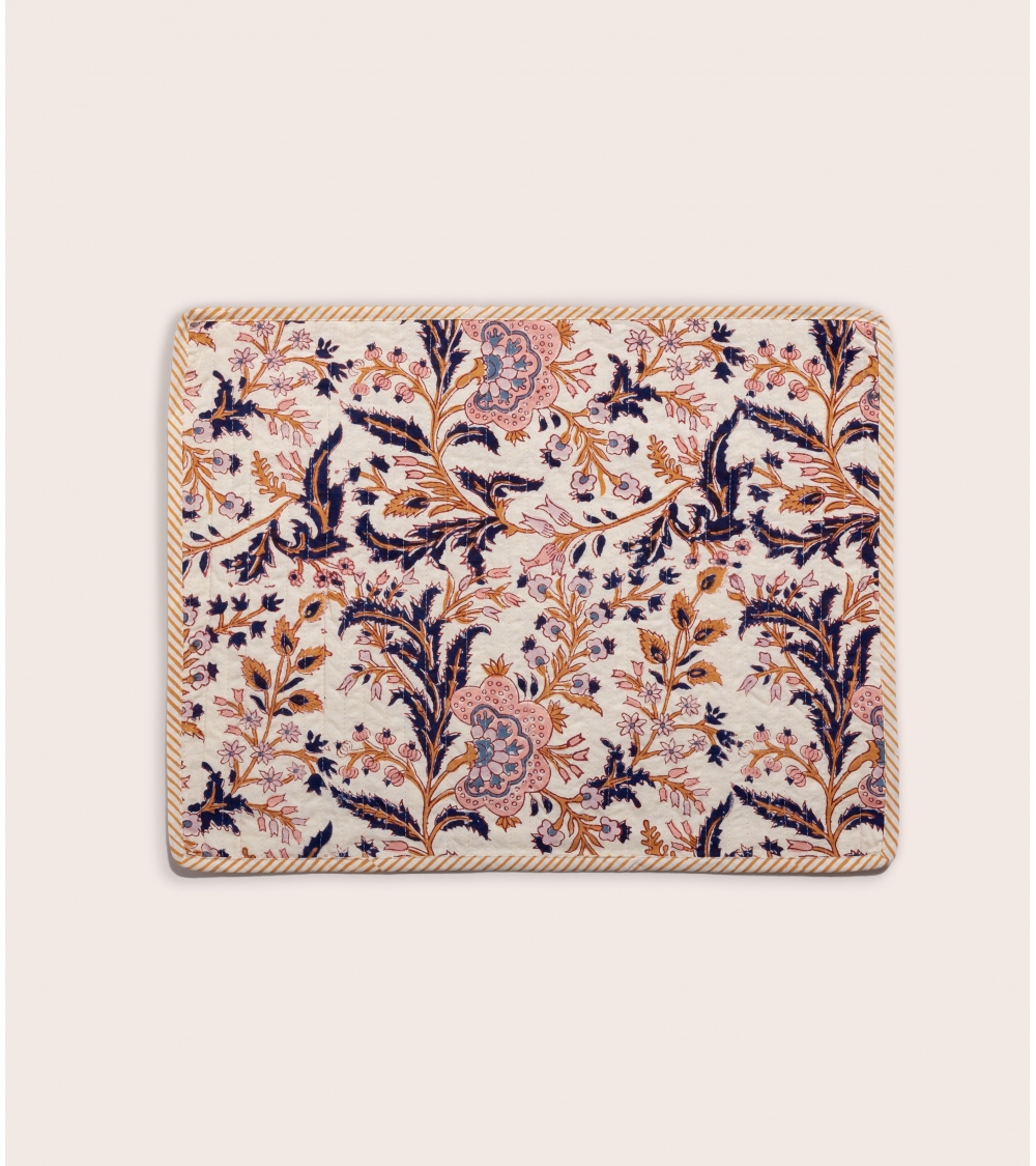 The ARCHANA quilted placemat is a bright piece to brighten up your table decor with its two printed sides. Perfect for creating a colourful, bohemian atmosphere at the table, this placemat can be matched with our napkins for an elegant match in your home.