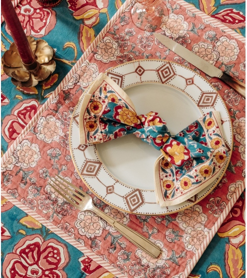 The DUBI quilted placemat is a poetic piece to brighten up your table decoration with its two printed sides. Ideal for creating a colourful, bohemian atmosphere at the table, this placemat can be matched with our napkins for an elegant match in your home.