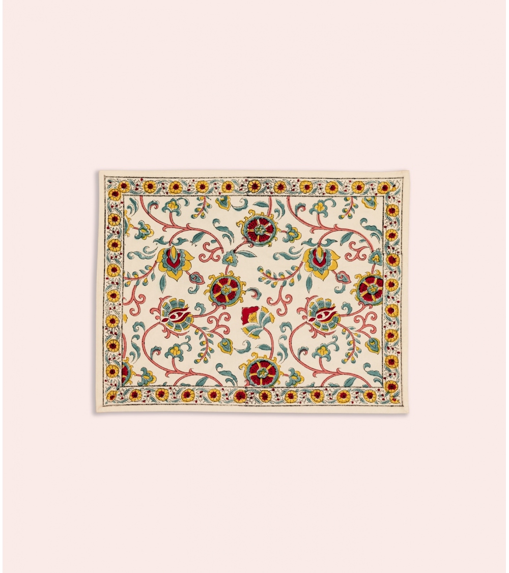 Made in India, this placemat embodies the excellence of an ancestral craft. Created using the traditional block printing technique native to Rajasthan, each piece is handcrafted by passionate artisans. A precious gesture to preserve unique artisanal traditions and support local communities.