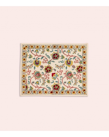 Enhance your table with the LIPI table mat, a radiant piece adorned with refined patterns inspired by Indian art. Perfect for adding a bohemian and colorful touch, this placemat creates a warm and elegant atmosphere. For perfect harmony, pair it with our matching napkins and transform your interior into a true living masterpiece.