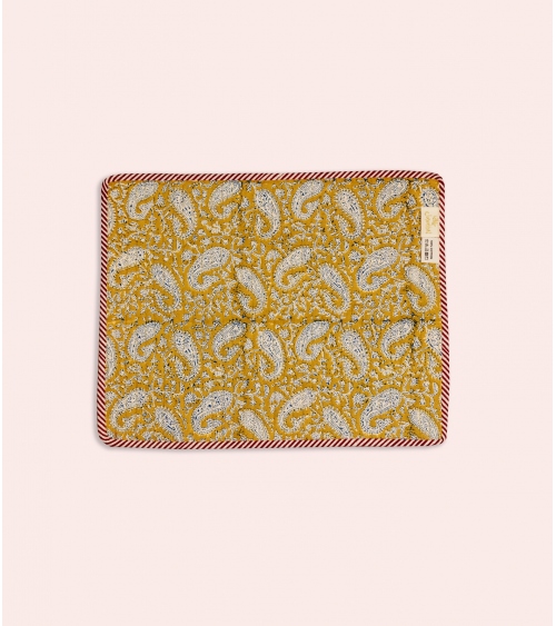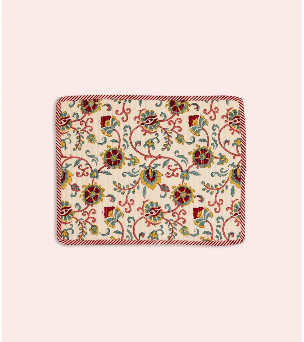 Made in India, this quilted table mat is the result of ancestral craftsmanship. Handcrafted using the traditional block printing technique native to Rajasthan, each piece is carefully created by passionate artisans. This artisanal process helps preserve the country’s unique traditions and supports local communities.