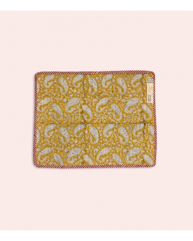 The quilted LIPI table mat is an exceptional piece that brings an elegant and luminous touch to your table decor. Adorned with refined patterns on both printed sides, it creates a bohemian and colorful ambiance, transforming every meal into a unique moment. For a harmonious and sophisticated ensemble, pair it with our matching napkins.