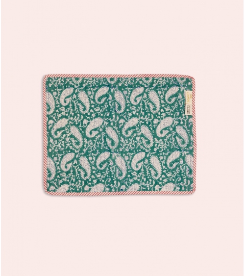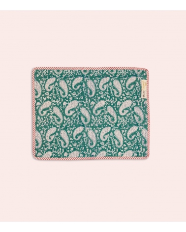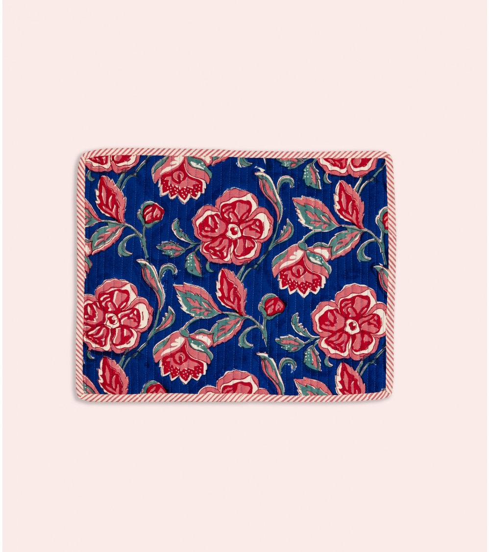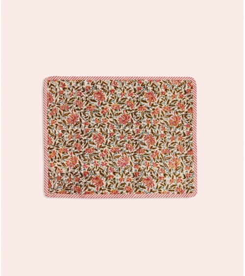 Made in India, this quilted placemat is the result of ancestral craftsmanship. Handcrafted using the traditional block printing technique native to Rajasthan, each piece is carefully created by passionate artisans. This artisanal process helps preserve the country’s unique traditions and supports local communities.