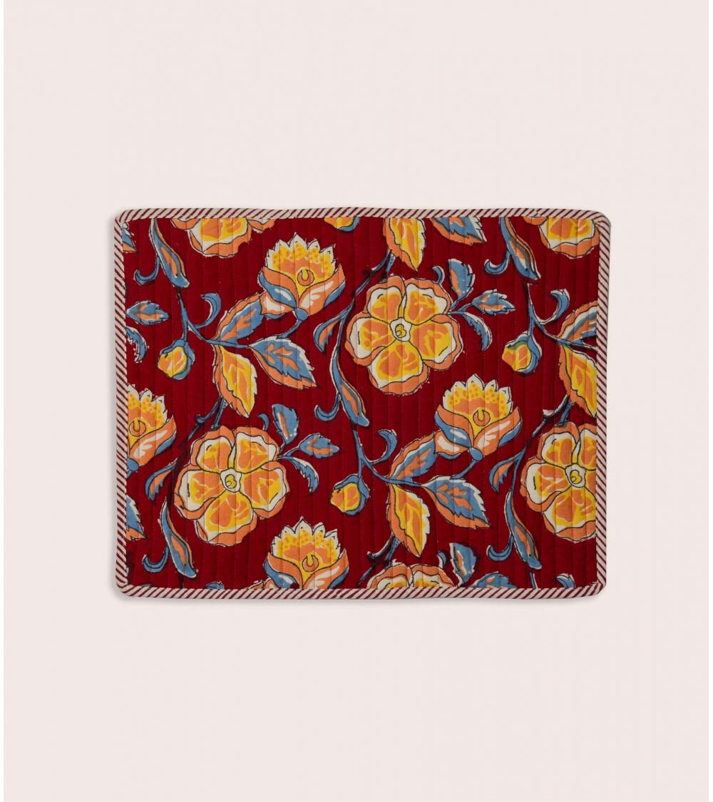 Made in India, this quilted placemat is the result of ancestral craftsmanship. Handcrafted using the traditional block printing technique native to Rajasthan, each piece is carefully created by passionate artisans. This artisanal process helps preserve the country’s unique traditions and supports local communities.