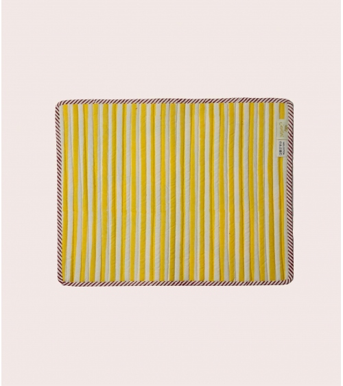 The quilted LONI table mat is an exceptional piece that brings an elegant and luminous touch to your table decor. Adorned with refined patterns on both printed sides, it creates a bohemian and colorful ambiance, transforming every meal into a unique moment. For a harmonious and sophisticated ensemble, pair it with our matching napkins.