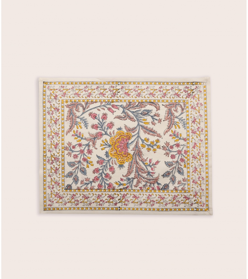 Made in India, this placemat embodies the excellence of an ancestral craft. Created using the traditional block printing technique native to Rajasthan, each piece is handcrafted by passionate artisans. A precious gesture to preserve unique artisanal traditions and support local communities.