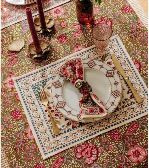 Made in India, this placemat embodies the excellence of an ancestral craft. Created using the traditional block printing technique native to Rajasthan, each piece is handcrafted by passionate artisans. A precious gesture to preserve unique artisanal traditions and support local communities.