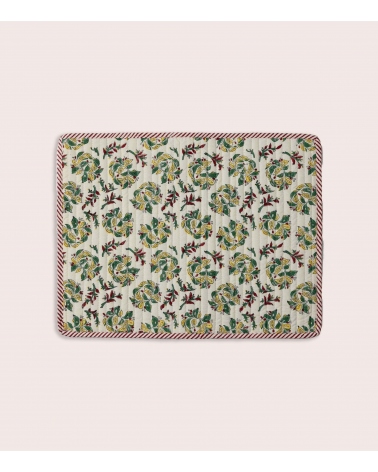 The Sarso quilted placemat pairs naturally with other pieces from the collection: tablecloths, table runners and napkins in complementary patterns for a chic table setting. Take advantage of its reversible design to switch up the mood: florals on one side, stripes on the other. The Yellow colourway pairs beautifully with terracotta or ochre, while the Offwhite colourway calls for forest green.
