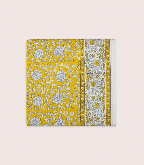 The BANNA cotton tablecloth is a bright and cheerful piece to embellish your table with its Indian floral pattern. Ideal for creating a chic, bohemian atmosphere in your home, this tablecloth can be matched with our placemats and napkins for perfect harmony.