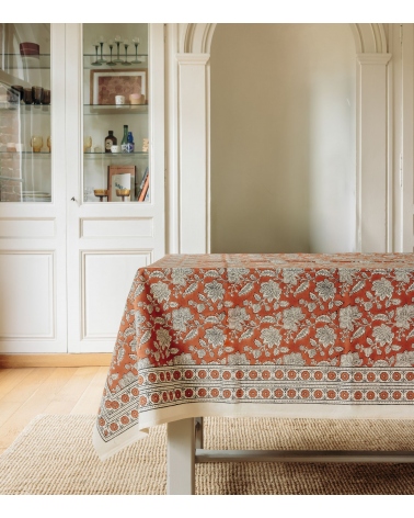 The RANG cotton tablecloth is a bright and cheerful piece to embellish your table with its colorful Indian pattern. Ideal for creating a colorful, bohemian atmosphere in your home, this tablecloth can be matched with our placemats and napkins for perfect harmony.