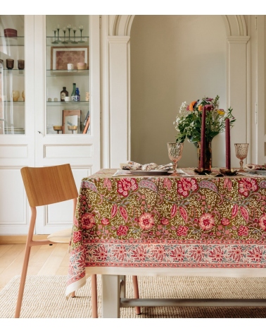 Made in India, this tablecloth is the result of ancestral craftsmanship. Handcrafted using the traditional block printing technique native to Rajasthan, each piece is carefully created by passionate artisans. This artisanal process helps preserve the country’s unique traditions and supports local communities.