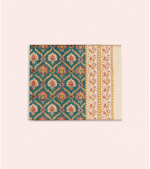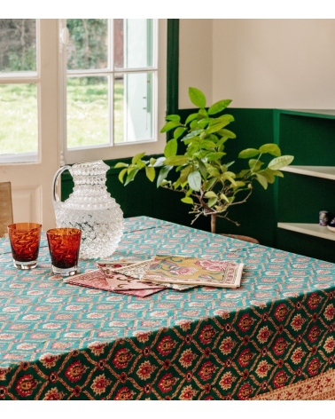 Made in India, this tablecloth is the result of ancestral craftsmanship. Handcrafted using the traditional block printing technique native to Rajasthan, each piece is carefully created by passionate artisans. This artisanal process helps preserve the country’s unique traditions and supports local communities.