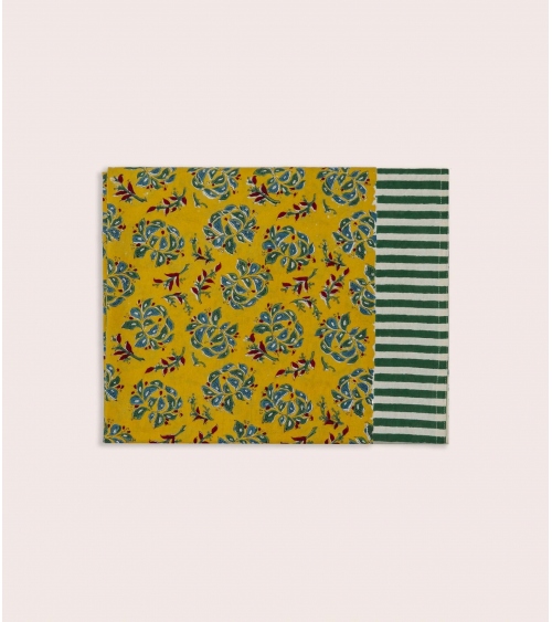 Machine washable at 30°C. Air drying is recommended to preserve its colours and the quality of its block print over time.