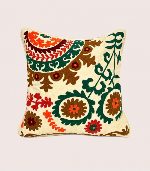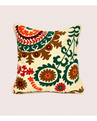 La housse de coussin en velours RANA arbore des motifs bohèmes inspirés des tissus Suzani d'Asie centrale. Ses teintes chaudes et son toucher douillet la rendent parfaite pour une utilisation dans le salon ou dans la chambre à coucher. Mélangez les motifs et les couleurs pour créer un intérieur étonnant et élégant.