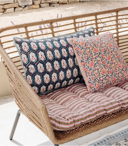 Fabriquée en Inde par des artisans experts selon la technique traditionnelle du blockprint, un savoir-faire ancestral du Rajasthan, cette pièce faite à la main contribue à préserver les savoir-faire traditionnels et à soutenir les communautés d'artisans.
