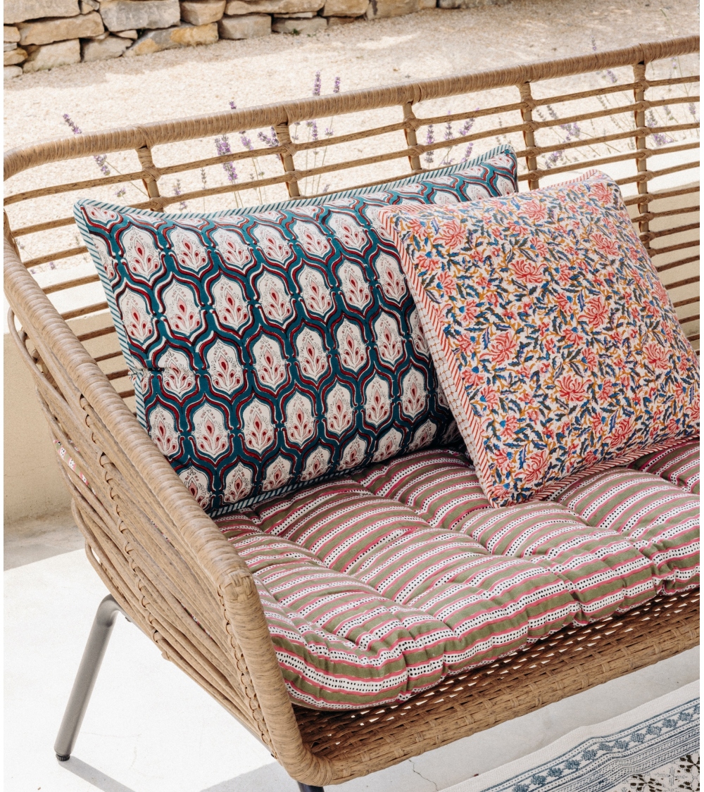 La housse de coussin REEMA arbore une palette lumineuse de couleurs et de motifs fleuris, qui apportent une élégance poétique et chaleureuse à votre décoration intérieure. Salon, Chambre, elle illumine tous les espaces. Accumulez motifs et couleurs pour une décoration envoûtante et un intérieur raffiné.