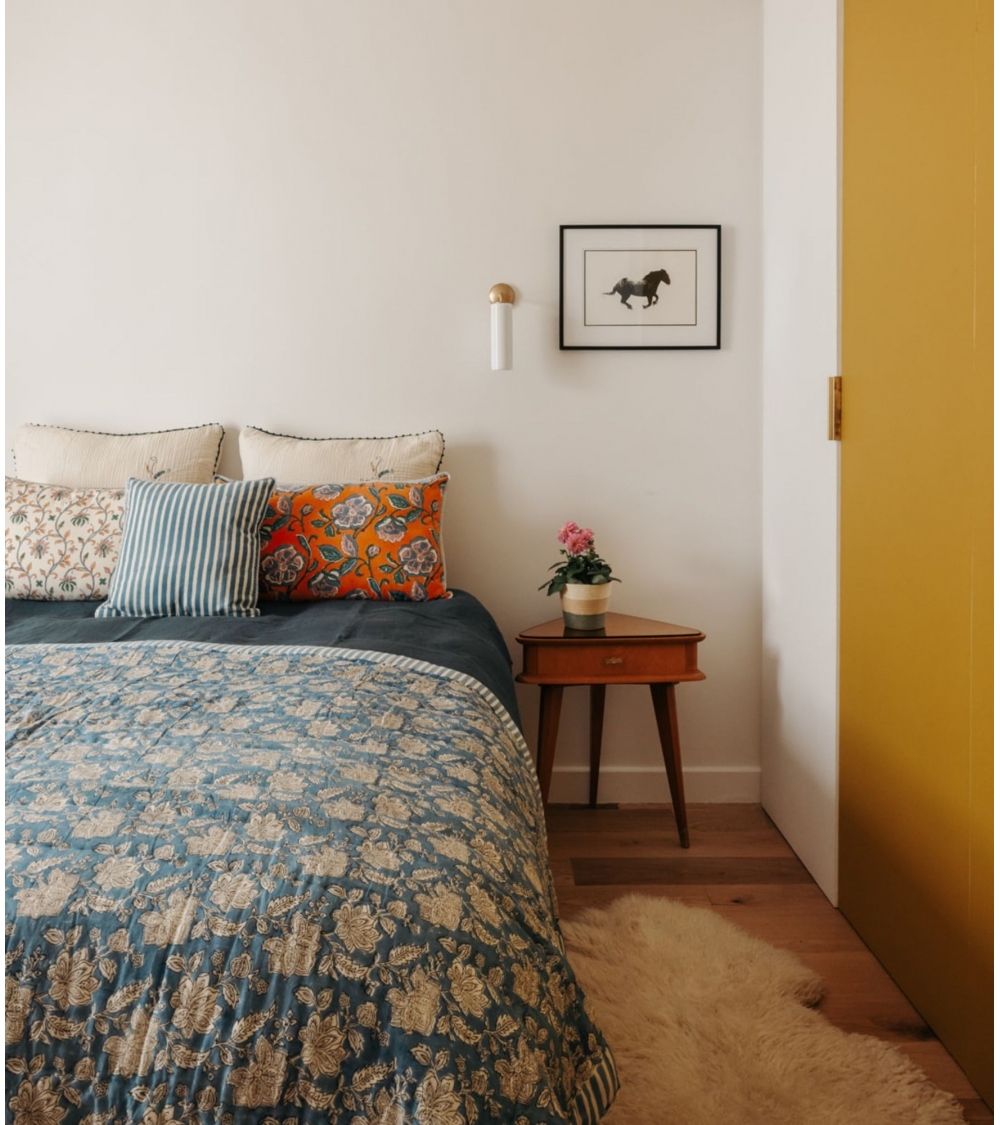 Fabriquée en Inde par des artisans experts selon la technique traditionnelle du blockprint, un savoir-faire ancestral du Rajasthan, cette pièce faite à la main contribue à préserver les savoir-faire traditionnels et à soutenir les communautés d'artisans.