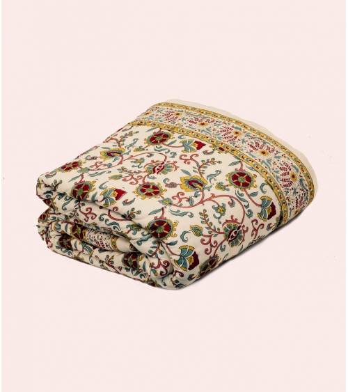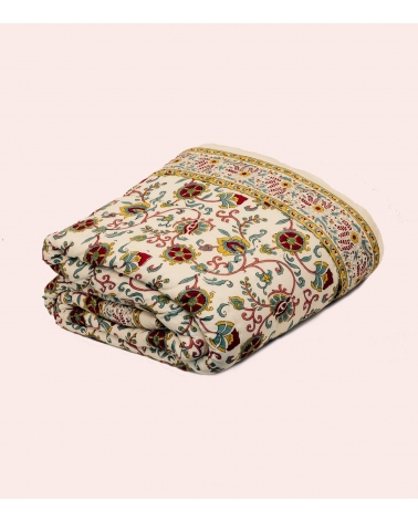 Chaque couvre-lit est une création unique, marquée par des irrégularités naturelles et une texture singulière. L’impression artisanale, réalisée à la main, peut présenter de légères variations, gages de l’expertise et du soin minutieux apportés à chaque pièce.